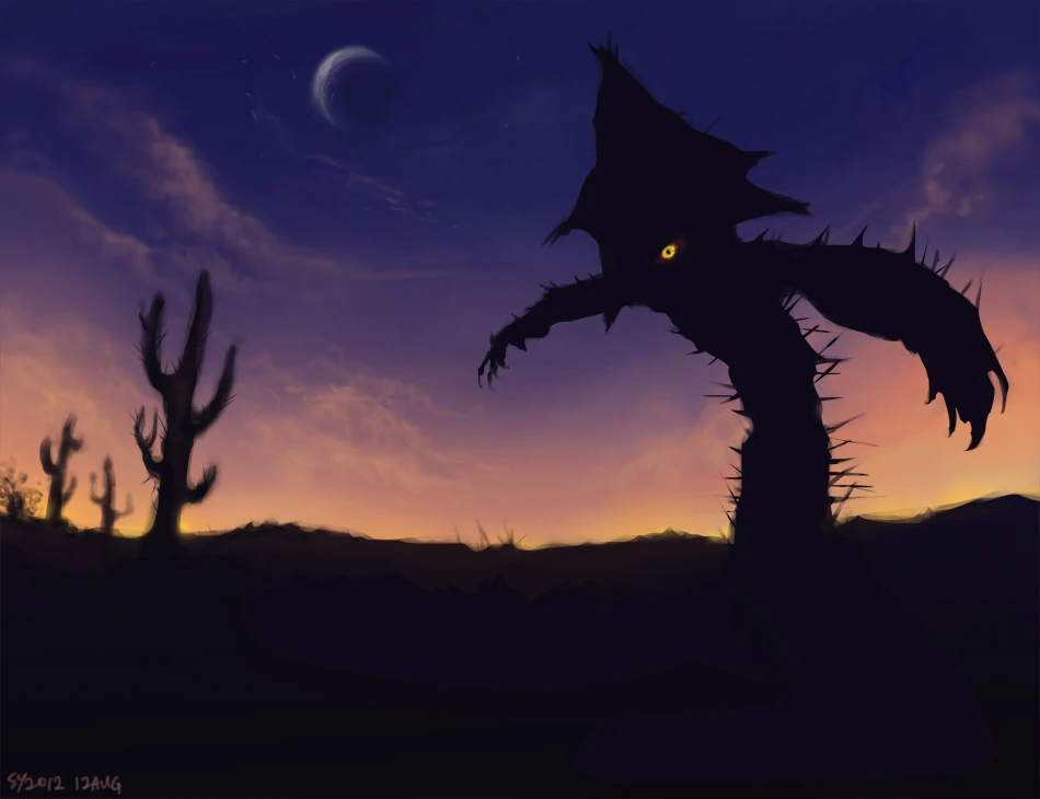 Es común que los humanos y pokémon que aguanten el calor (Charizard, por ejemplo) se adentren en los desiertos para realizar expediciones o para cruzar de un lugar a otro. Aún así, se agotan, pierden energías y deciden dormir tras el fresco de la noche. Cuando los Cacturne encuentran a estás presas, se acercan a ellas mientras duermen, y les dan un abrazo mortal. Con sus púas absorben toda el agua del cuerpo, secan los seres y los vuelven simples momias polvorientas que se desintegran con la brisa. Y en caso de que los aventureros sigan en pie en la noche, la cosa no es mejor.