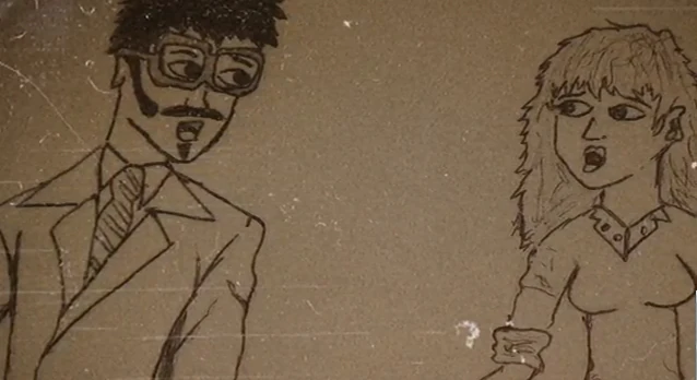 Y al voltearse se encuentran con un muñeco de payaso. Mostraba rasgos bastante perturbadores, como una sonrisa con dientes filosos y un ojo con una pupila considerablemente mas pequeña que la otra.