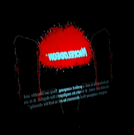 ¿Ese texto al revés? Decía: "Nickelodeon no es una compañía perfecta. Son horribles y no deberían existir. Trata a sus empleados como mierda de perro. Es una compañía injusta que merece pudrirse en el infierno por la eternidad".