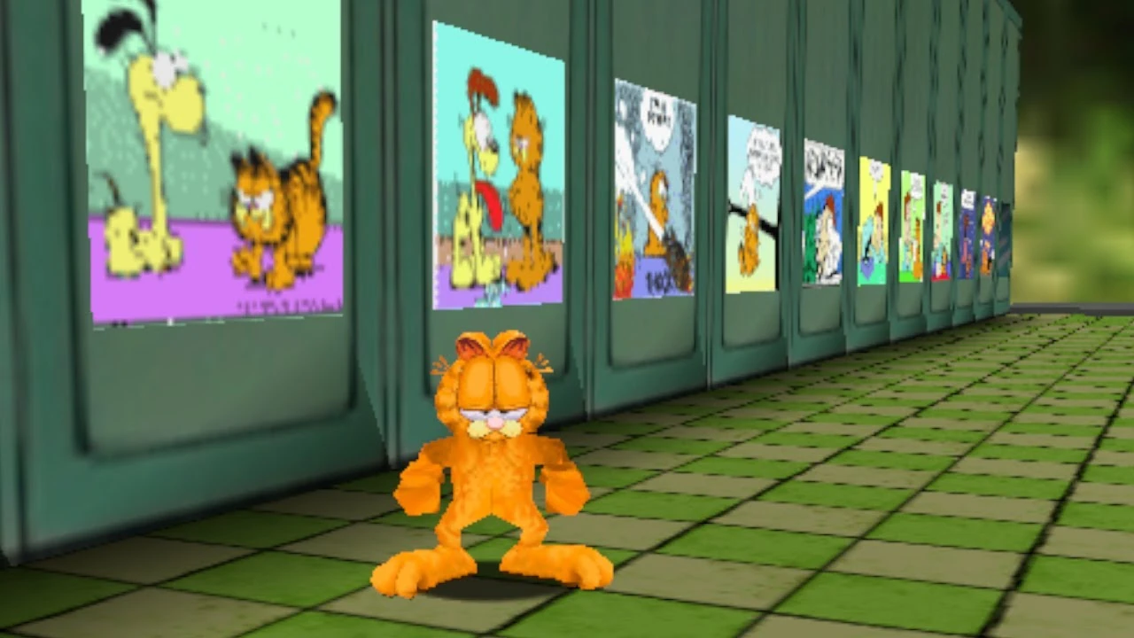 Era algo diferente: En vez de que apareciera el logo de Super Mario 64, aparecio un logo de Garfield y sus amigos en el que este decia “GARFIELD DESOLATION”, justo despues de esto se escucho a Garfield decir: “Its a me Garfield!”