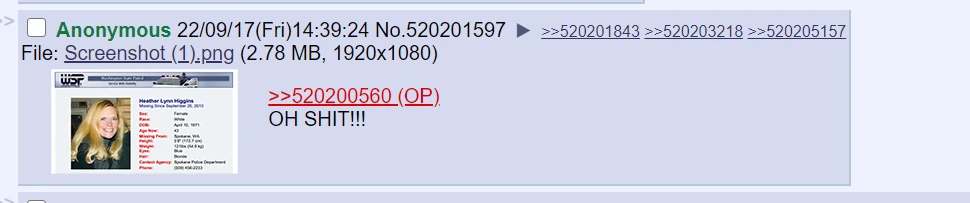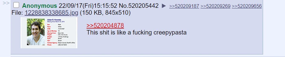 Los otros usuarios creyeron que era una broma, pero se supo que era una persona verdadera y estaba en listada en las listas de personas desaparecidas de Washington. Entonces los usuarios empezaron a buscar los demás nombres de personajes genéricos en google, y se supo que la mayoría eran personas reales y que estaban desaparecidas.