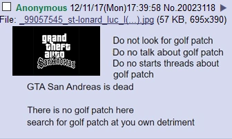 - ↑ https://boards.4channel.org/x/thread/25649597/golf-patch