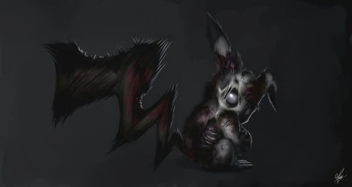 Ignoré los mensajes y seguí como si nada hacia la hierba para que apareciese Oak y me diese a mi Pikachu, el cual sería mi primer pokemon. Oak apareció, todo normal, pero el pokemon que se enfrentó no era el que yo esperaba, sino uno que ya había visto: era pikachu oscuro, con los mismos ojos sangrientos de hace un momento, y con esa sonrisa triste desarticulada. Estaba al nivel 60.