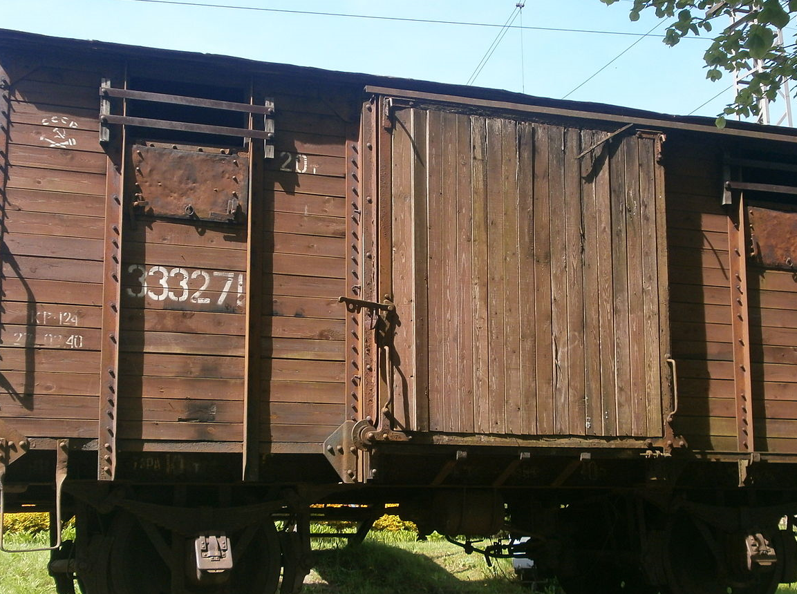 The man thought for a second and realized that he had no other choice, but to obey. He stood up from the bench and followed the soldier holding his belongings to the train car closest to them. With his strong hand, the soldier unlocked and slid the heavy square door, located on the side of the boxcar, sideways to the open position. The man was surprised to see that inside the car there were no benches, just the floor with hay on it and a few skinny men sitting in the hay. They were covering their emaciated faces covered with stubble to protect their eyes from the bright light that suddenly for them came through the square doorway into the car. The car had only two windows; they were small horizontally-stretched rectangles located close to the roof on both sides of the sliding door. The windows were partially covered with thick metal bars attached to the wall outside of the car making it impossible for a human to escape from inside. The inside wall of the car across from the door was entirely occupied by a huge poster showing Lenin and Stalin with the motto: "In the USSR, hard labor is a matter of honor, matter of glory, matter of valor and heroism." A strong smell of human excrements emanating from the car hit the man in the nose.