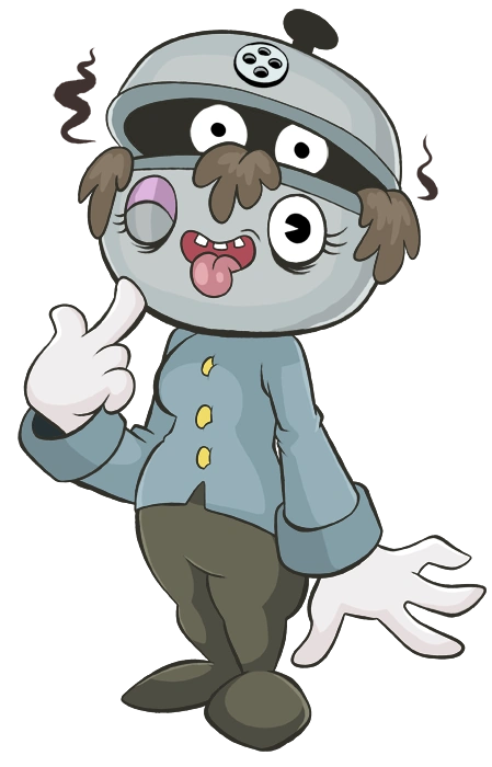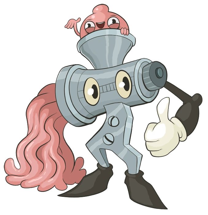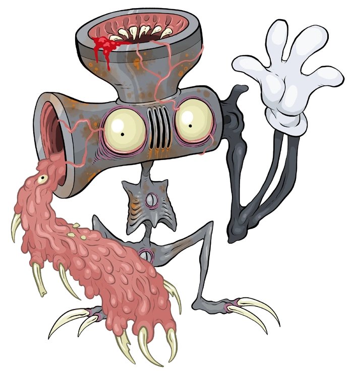 A pair of slimy eyeballs, like the burger-man's, stared down at me from one side of this huge contraption, and where there should have been a handle was only a black, skeletal arm, ending in another of those white cartoon-gloves.
