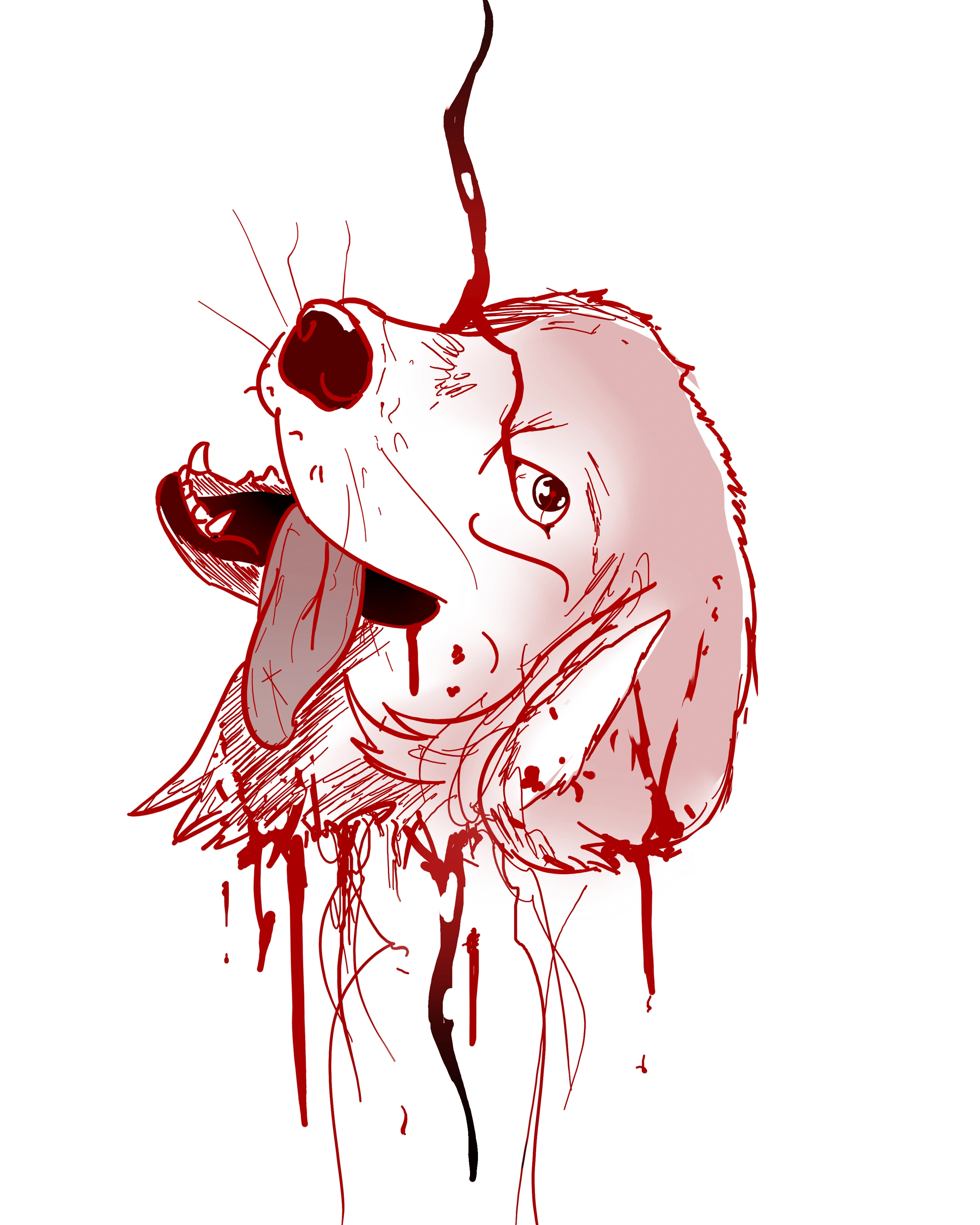What came out of the alley was far worse, if not expected ever since I set foot in this damn place. What looked like a medium-sized beagle/Spaniel mix came ambling out of the alley, only it wasn’t normal. It was covered in what was definitely blood and as it came closer I got a better look at the gory details. I could see right through its shattered skull into its brain. It was leaking out and pooling on its snout, dripping to the floor, leaving occasional squishy bits on the floor. At least two of its limbs were broken and dragging along the floor, giving it a weird hopping movement.