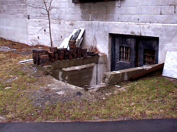 Just as he kicked the wall one last time, we noticed the wall began to tear. Like paper. Josh looked down at his foot and realised he had tore what looked like a piece of painted paper away from the stone wall. He then began to rip away the remaining pieces of paper only to reveal what looked like an outdoor basement. The doors were rustic and scratched, but we noticed that the metallic handle was clean..as if it had been tampered with. Josh looked over his shoulder to me, and I gave him a nod. I quickly took a photo of the layout of this basement-like thing. Josh then walked down to the doors and gave them a push, and to both of our surprise the doors were simply blocked by a plank of wood; which Josh was able to push away with ease. We then pushed opened the doors slowly and cautiously. Who knows what could be kept in here? It was obviously hidden for some reason.