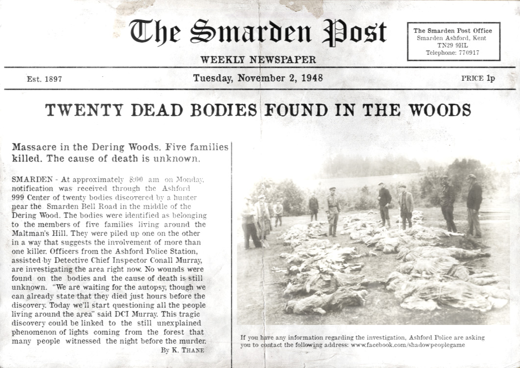 In 1964, private investigator Robert Collins conducted in-depth witness interviews designed to uncover hints about the alleged activity of an unknown religious cult in the village of Smarden. His research stopped after he died in a tragic car accident the following year.